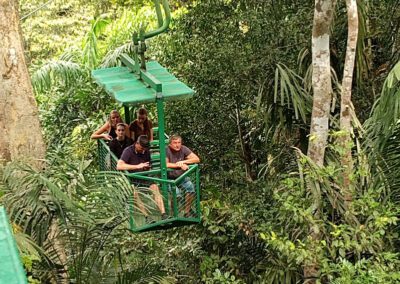 rainforest on board an open-air aerial tram.