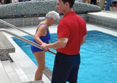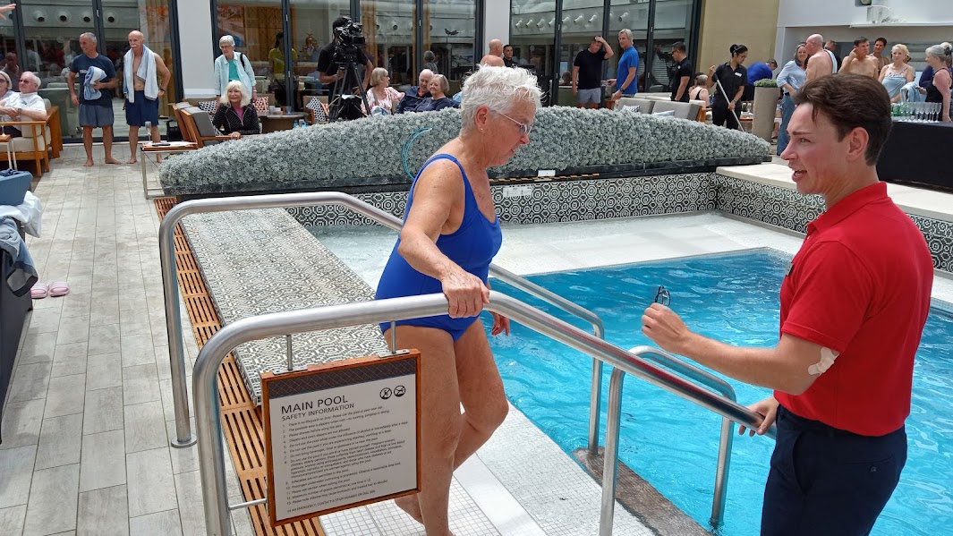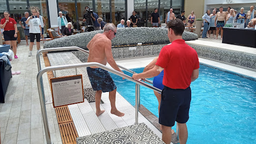 Bev started the day with a water aerobics class. Very choppy pool waters, due