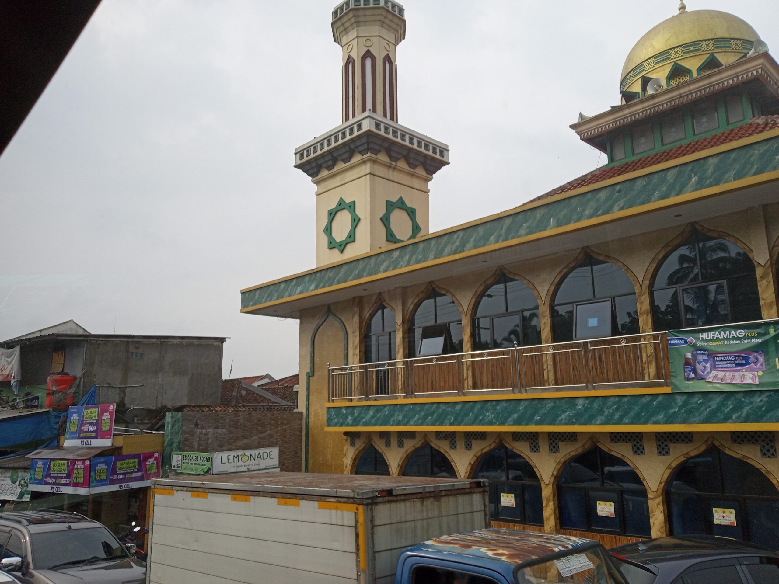 water cistern, busy street life and traffic, the mountains in